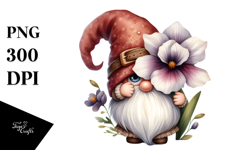Similar Design Products to Watercolor Cute GNOME with Big Hat and Zinnia PNG