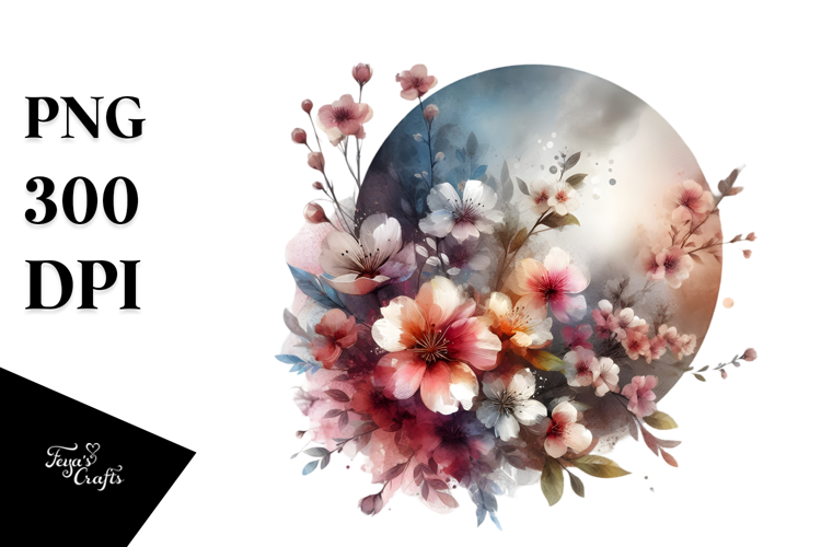 Flower Splashes Circle Grungy Whitebackground Digitalpainting Halfflowers Modernlook