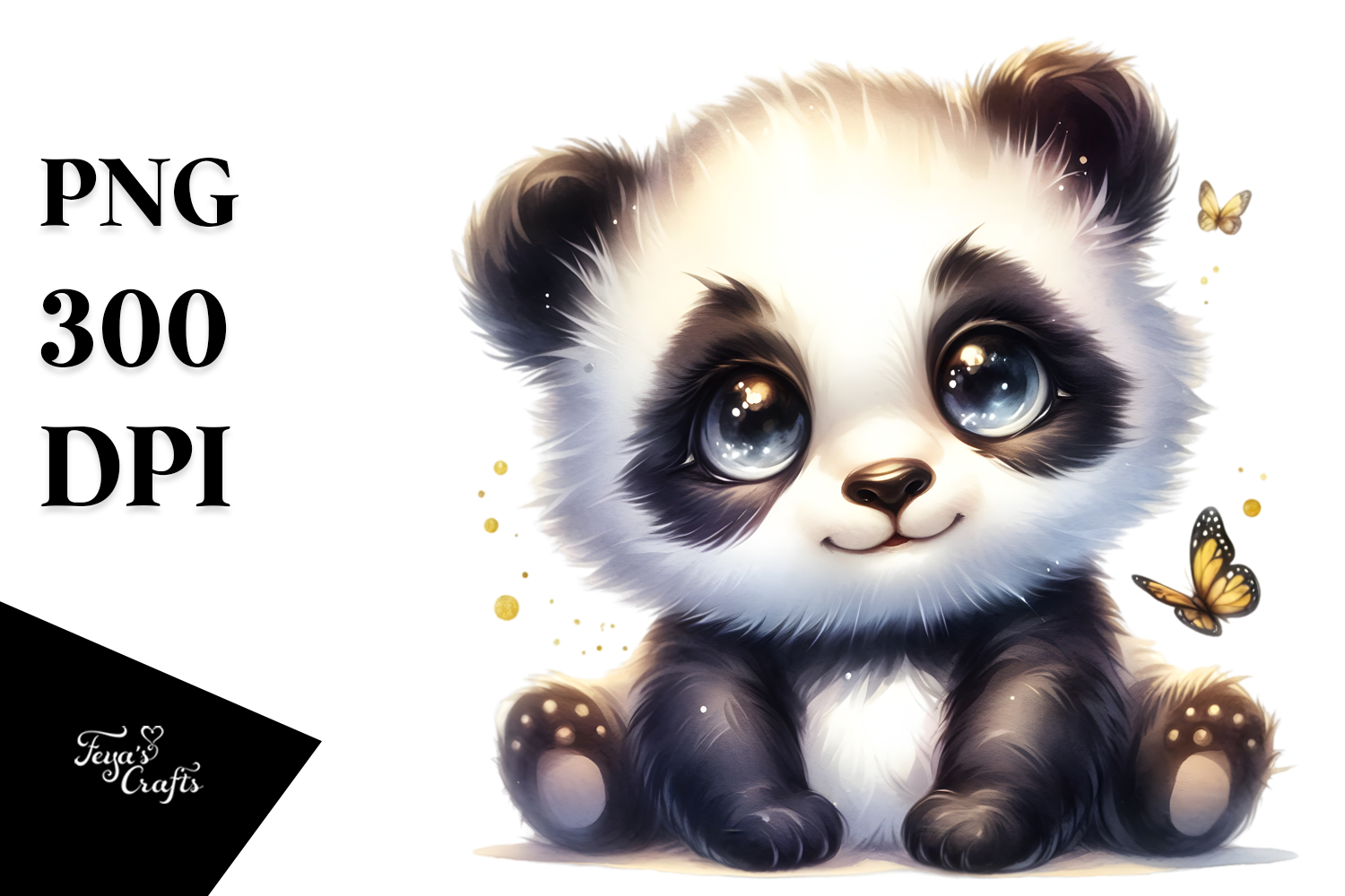 aCute Energetic Panda with Big Eyes, PNG example image 1