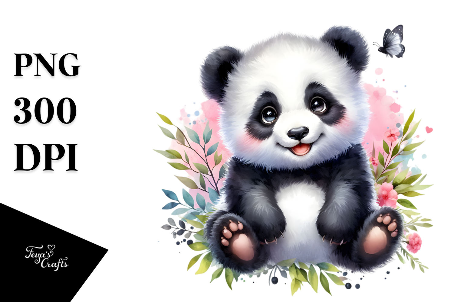 aCute Energetic Panda with Big Eyes, PNG example image 1