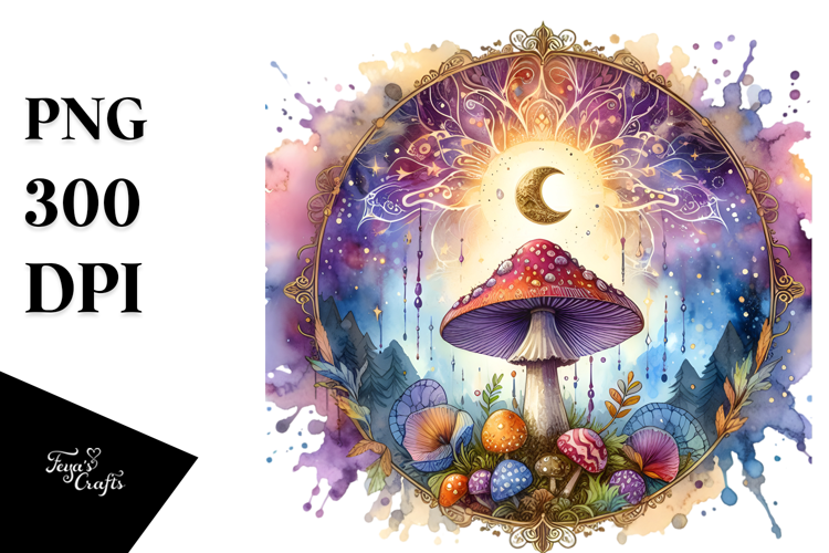 Watercolor Celestial Splash Vibrant Mushroom Magical Whitebackground Tarot Centered