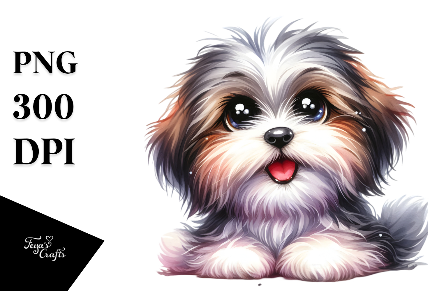 Cartoon Watercolor Baby Happy Whitebackground Bigeyes Crazyfur Babyyorkshireterrier