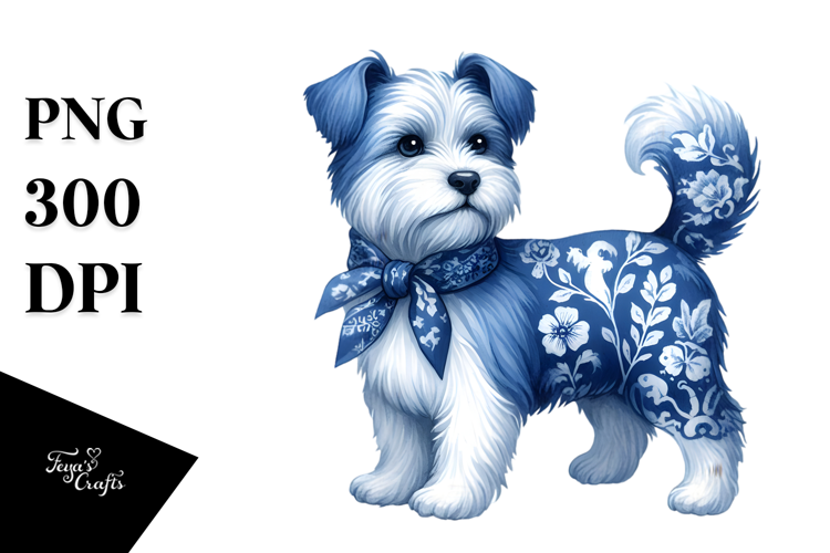 Blue Toile Dog, PNG example image 1