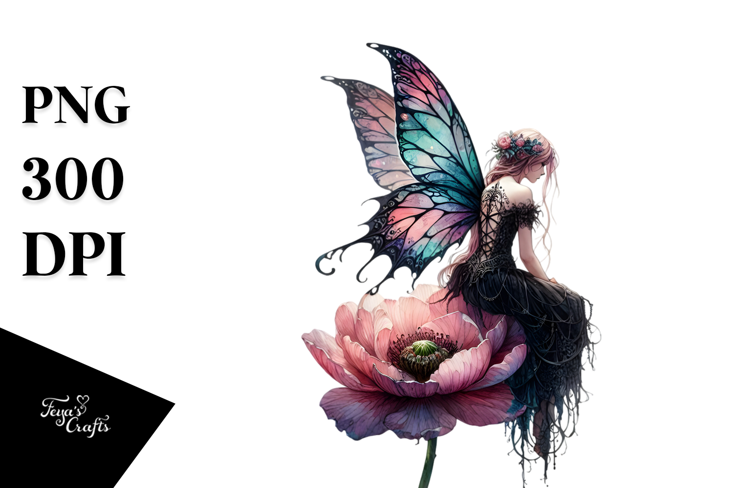 Watercolor Gothic Fairy on Flower PNG example image 1
