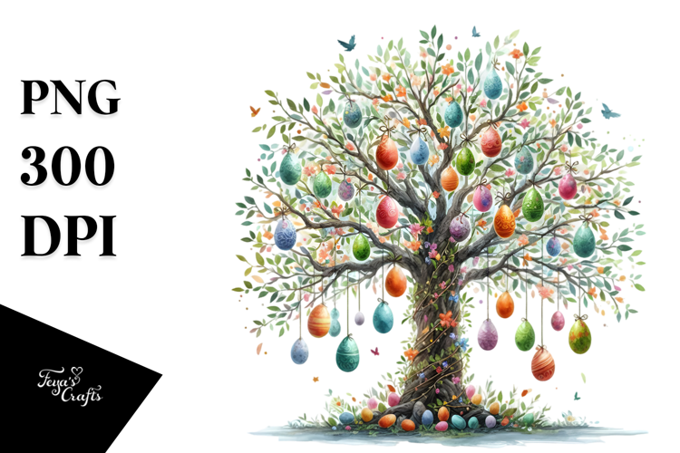 Watercolor Colorful Tree with Eggs PNG example image 1
