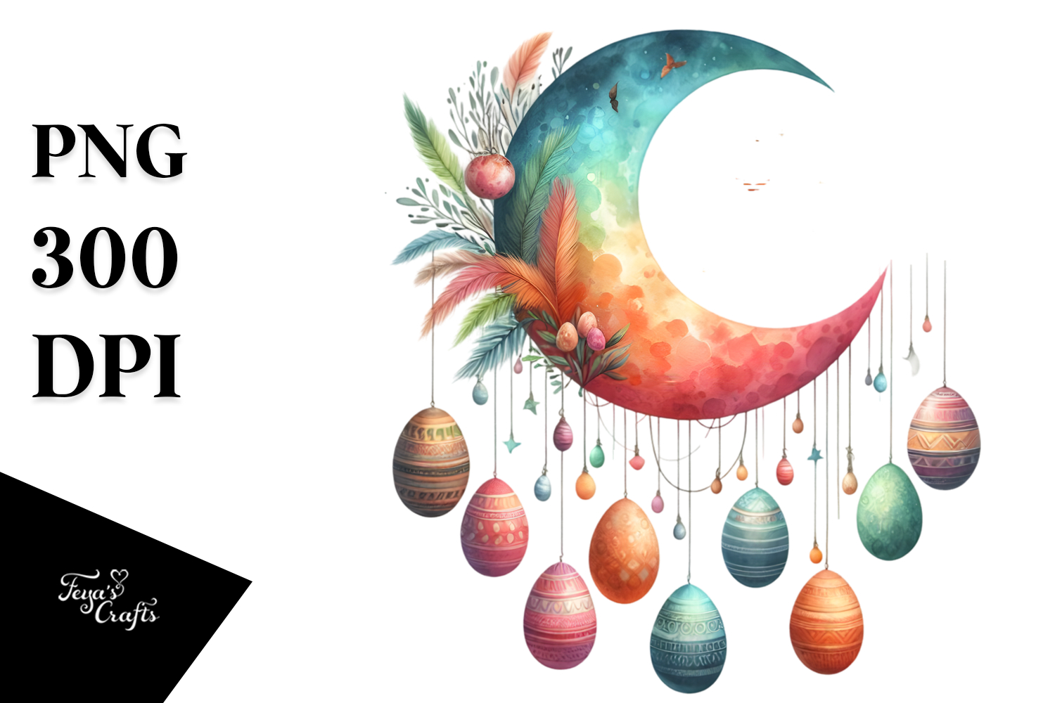 Watercolor Colorful Half Moon with Eggs PNG example image 1