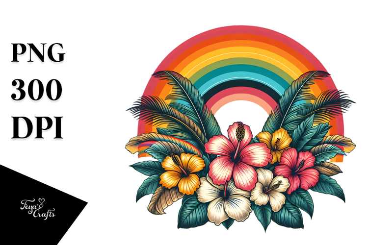 Vintage Tshirt Flower Glossy Clipart Tropical Rainbow Whitebackground Centered