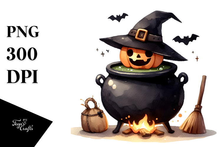 Simple Funny Halloween Clipart with Cauldron, Transparent example image 1