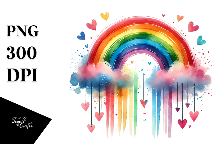 Watercolor Simple Art Hearts Washed Rainbow Hanging Whitebackground Digitalpainting