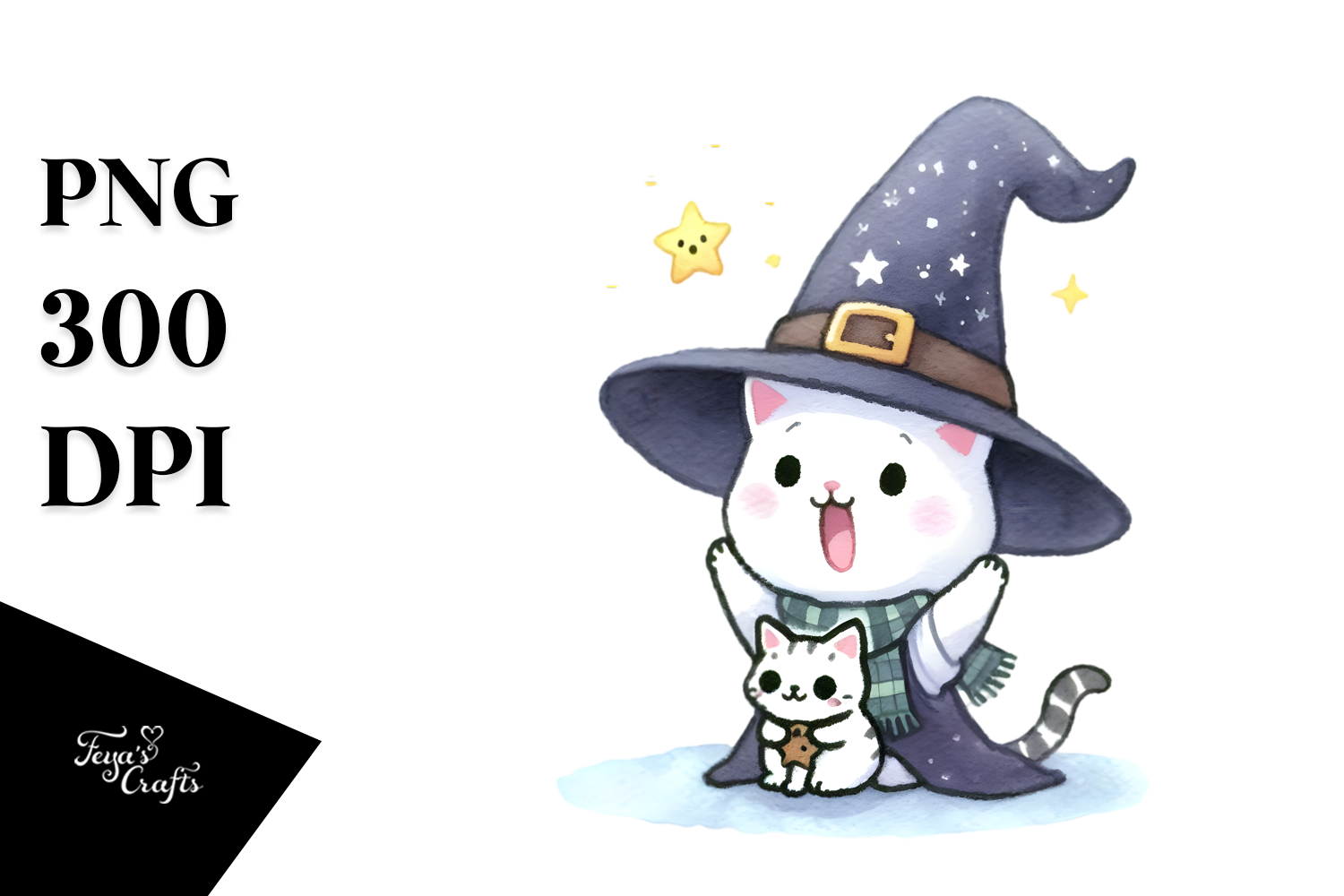 Excited Witch with Cat PNG example image 1