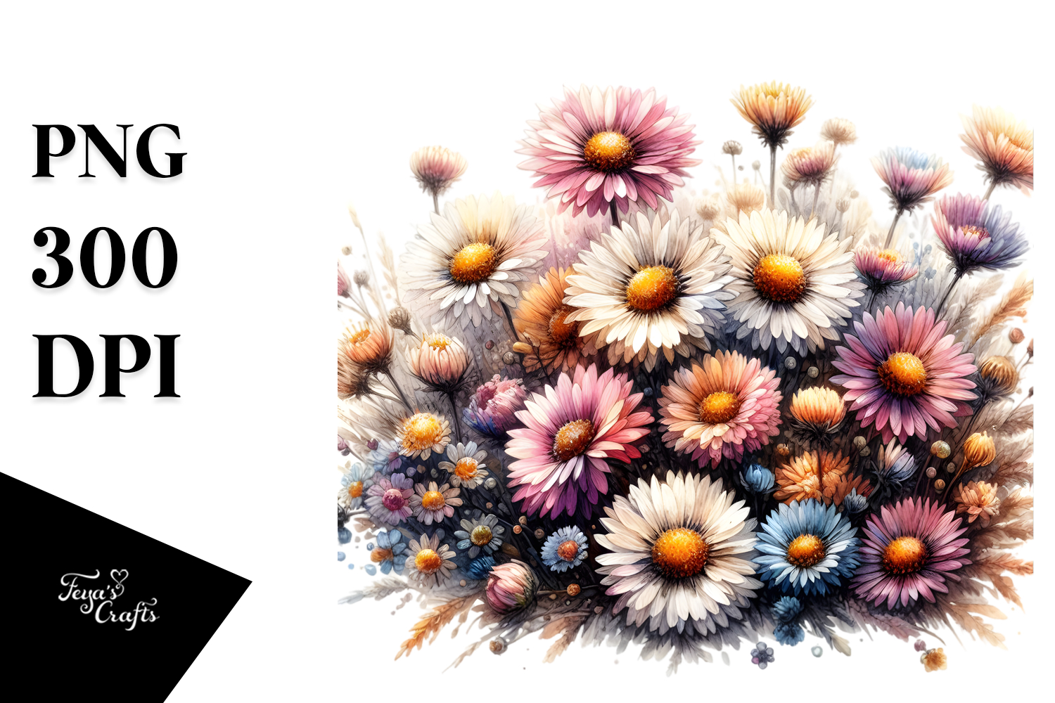 Similar Design Products to Colorful Daisy with Gold Insertions Watercolor PNG