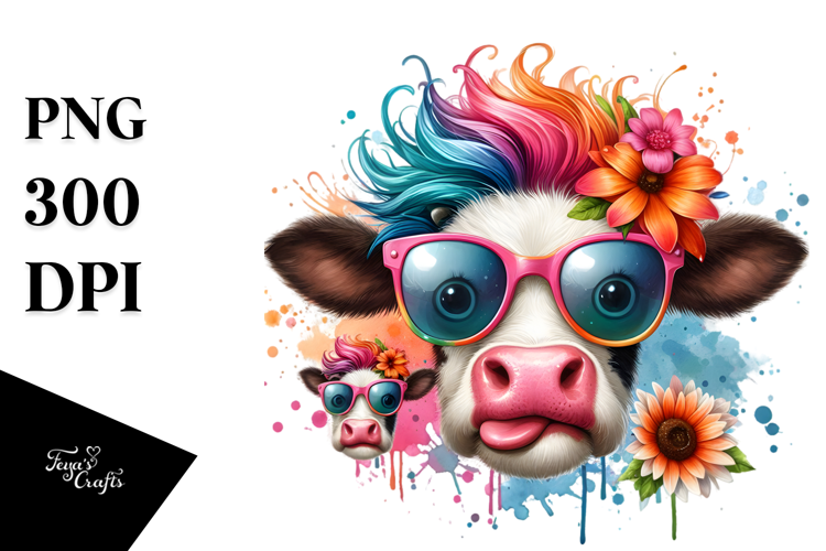 Funny Crazy Cow with Cool Hair PNG example image 1