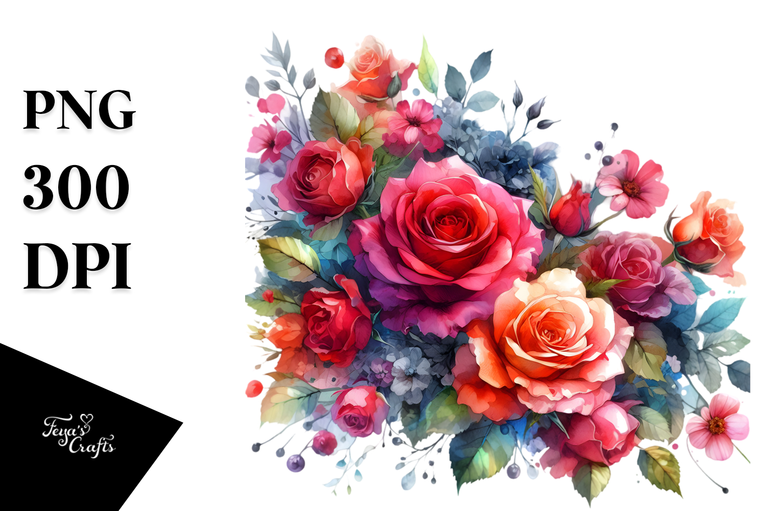 Watercolor Colorful Glossy Abstract Vibrant Whitebackground Redroses