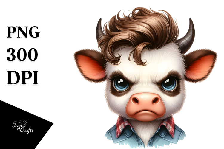 Watercolor Cool Hair Expressive Cow Whitebackground Centered Disgusted