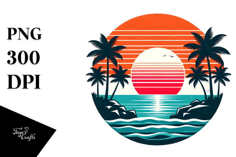 Retro Beach Clipart Sunset Tropical Whitebackground Centered Tshirtstyle Tropicalsunset