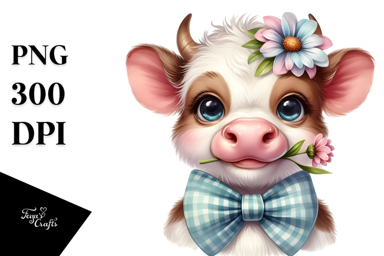 Watercolor Happy Flower Angry Bow Tie Eyes Cow Whitebackground