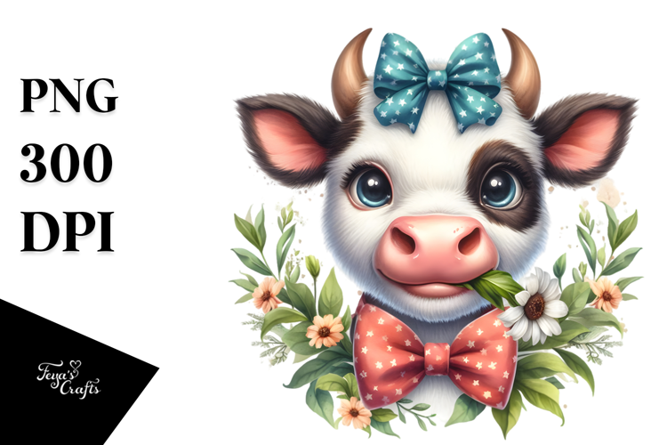 Watercolor Flower Crazy Bow Tie Eyes Sunglasses Cow Whitebackground
