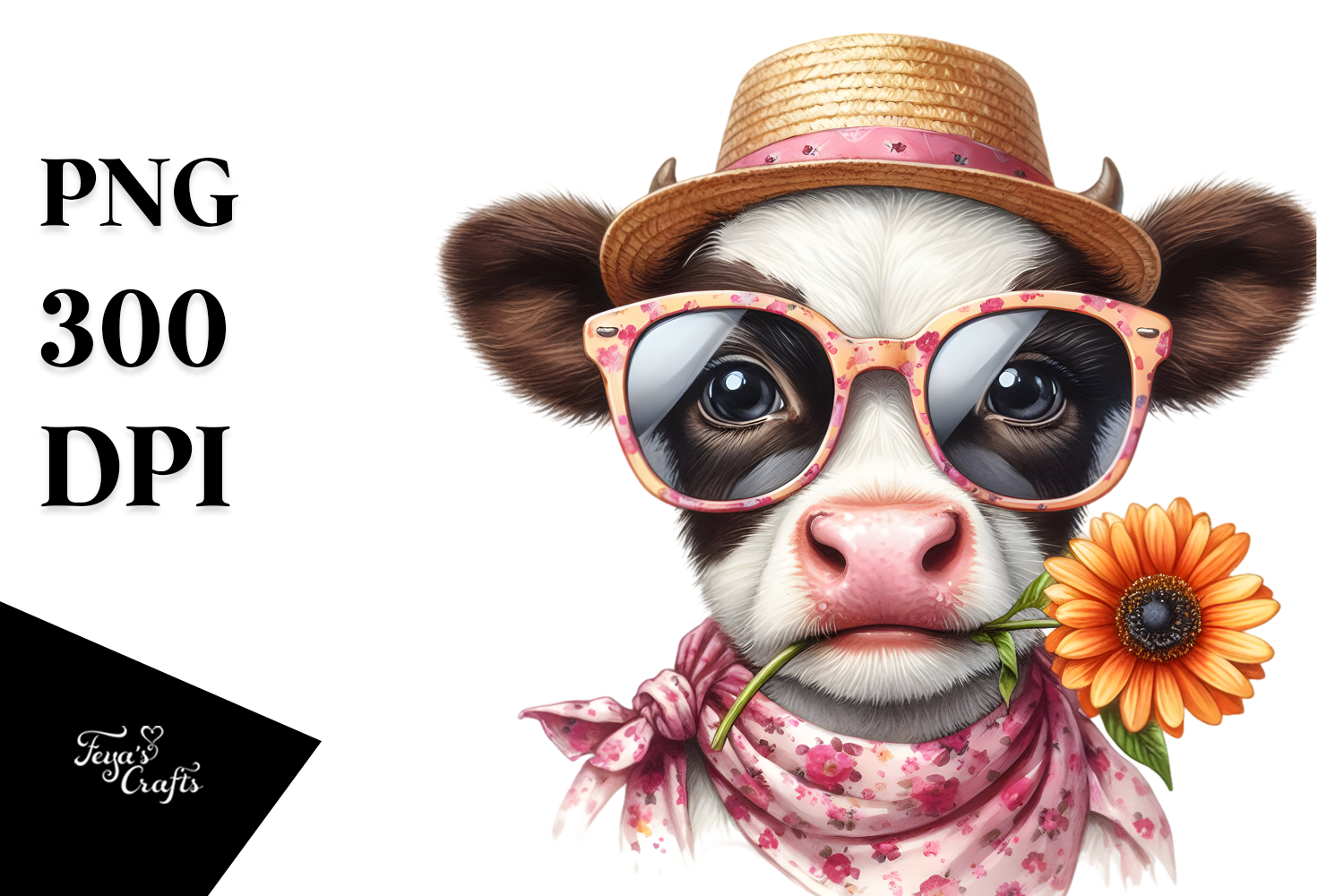 Watercolor Flower Clipart Crazy Eyes Sunglasses Whitebackground Babycow