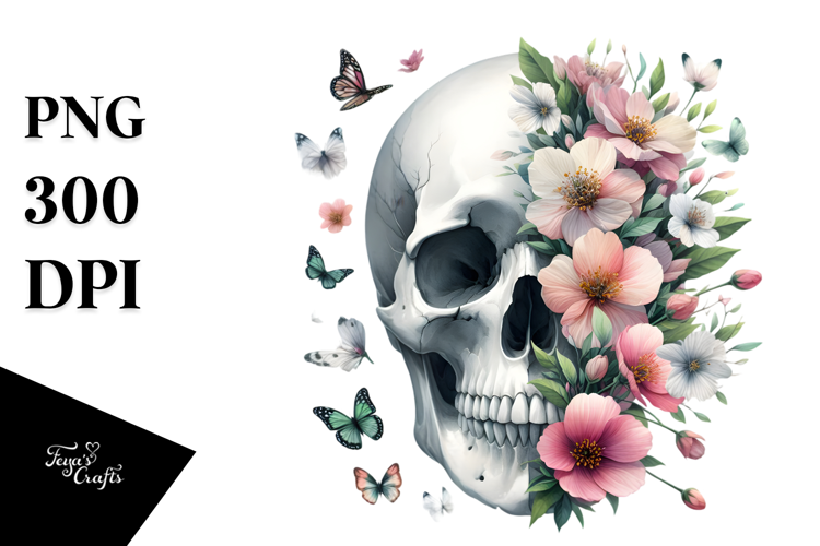 Similar Design Products to Vibrant Spring Flower Skull, Watercolor PNG