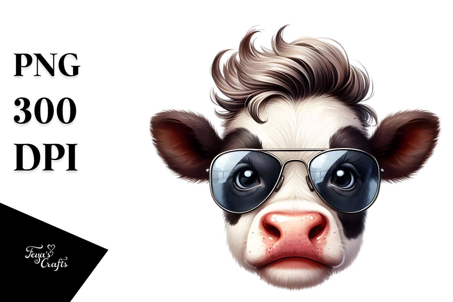 Funny Baby Cow with Cool Hair, PNG example image 1