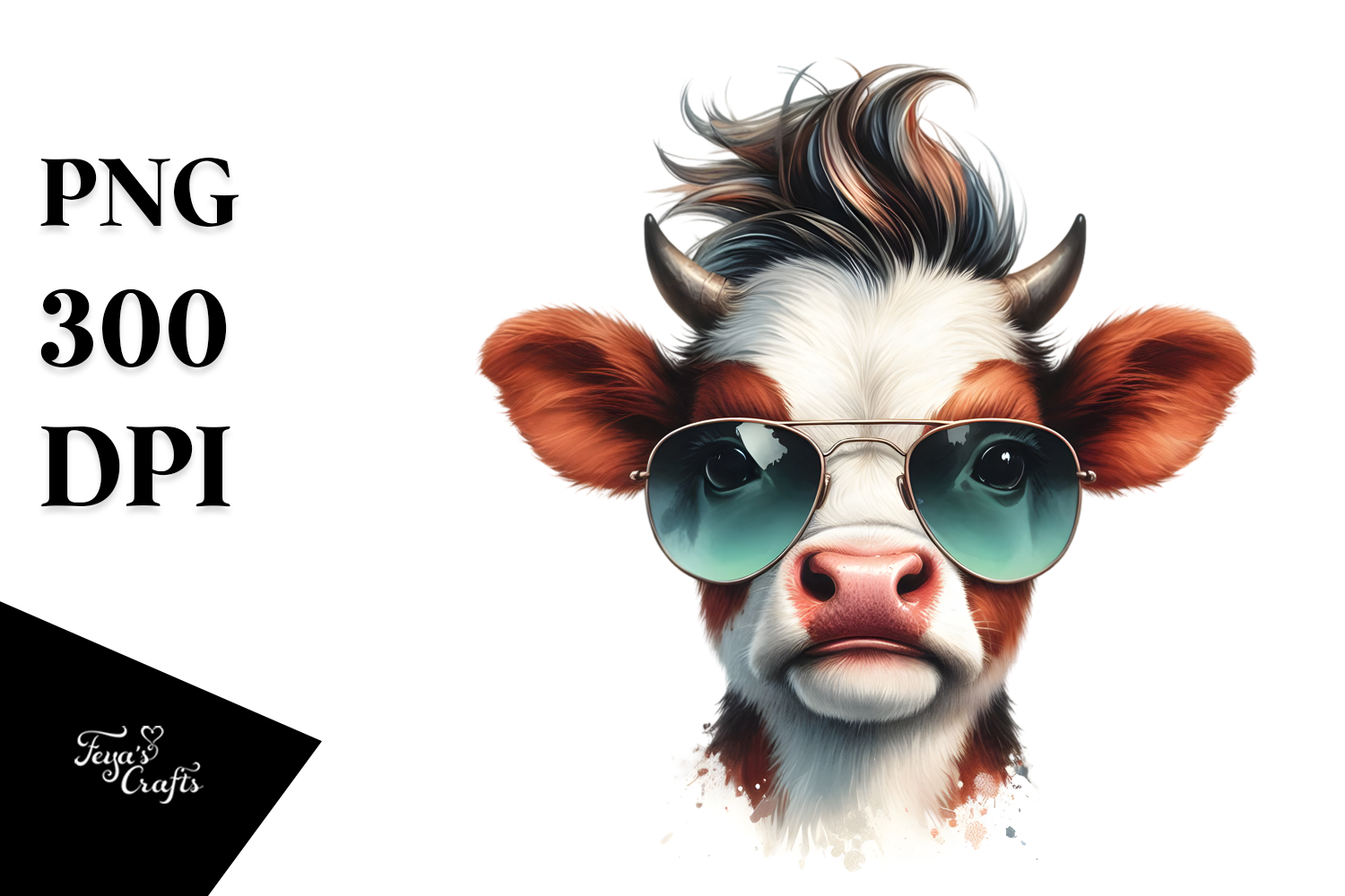 Funny Baby Cow with Cool Hair, PNG example image 1