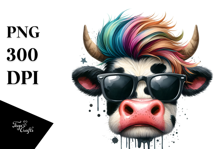 Funny Design Cow Whitebackground Watercollor Bigeyes Coollookinghair Expresiveface Desgusted
