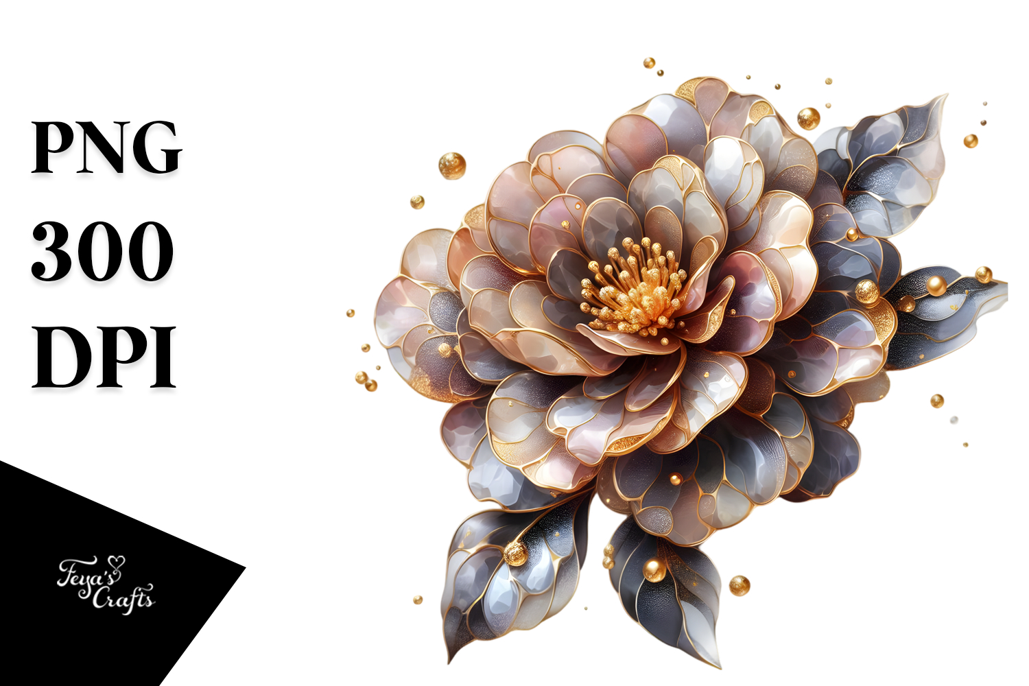 Sticker Summer Flower Shiny Golden Png Material Sublimation Camellia