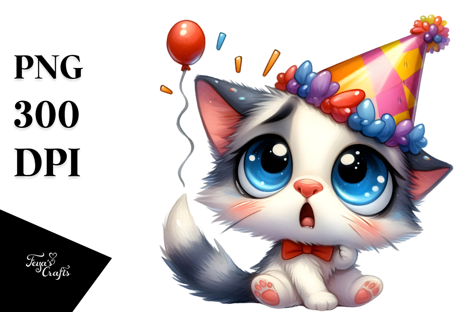 Cartoony Cat with Party Hat, Transparent PNG example image 1