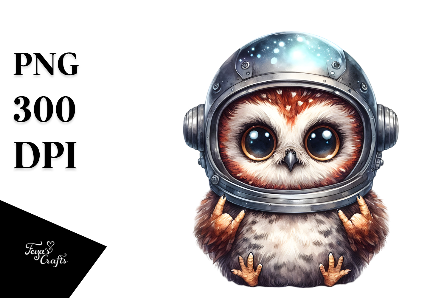 Watercolor Cute Baby Owl Energetic Whitebackground Bigeyes Astronauthelmet Rockerlook