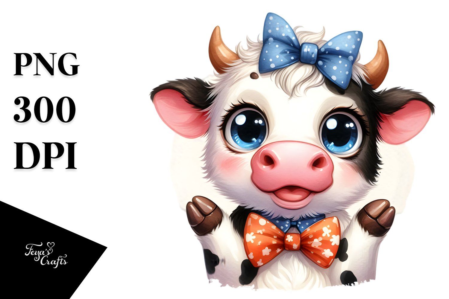 Funny Cow with Bow and Tie, High-Res PNG example image 1