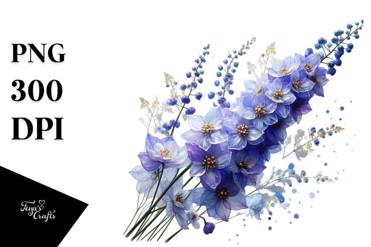 Artistic Transparent Delphinium Whitebackground Watercolorsplash Glassmaterial Metallicinsertions