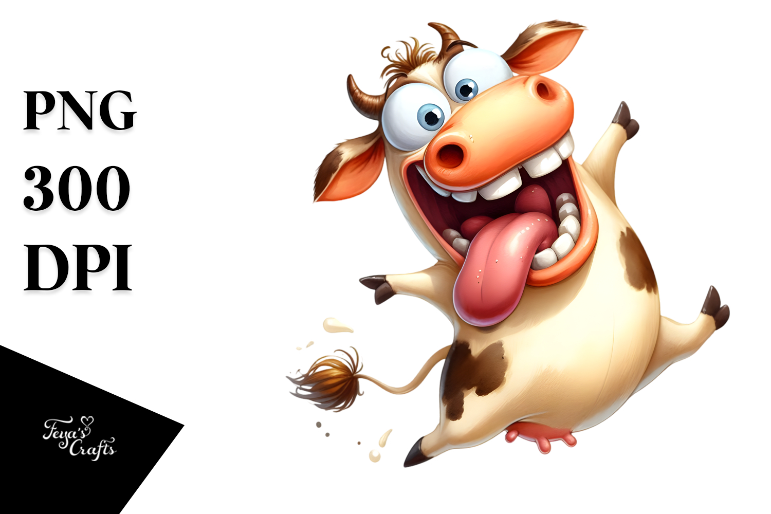Jumping Cow Quirky Excitement Rollingeyes Tongue-out Cowcaricature