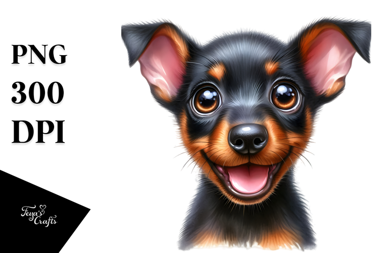 Cartoon Watercolor Cute Happy Whitebackground Bigeyes Babydobermanpinscher Crazyfur Puppydogeyes