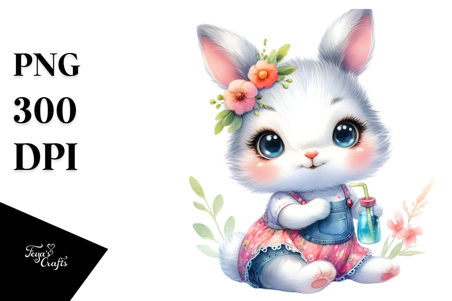 Image Watercolor Cute Baby Energic Bunny Details Summerclothes
