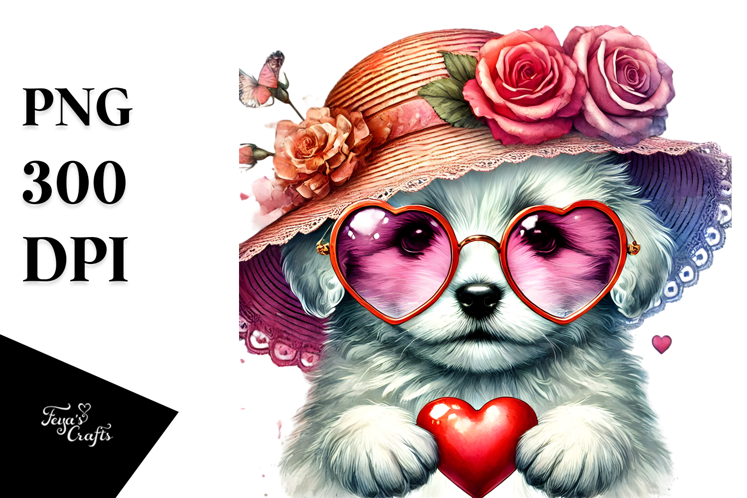 Colorful Puppy with Heart Sunglasses PNG example image 1