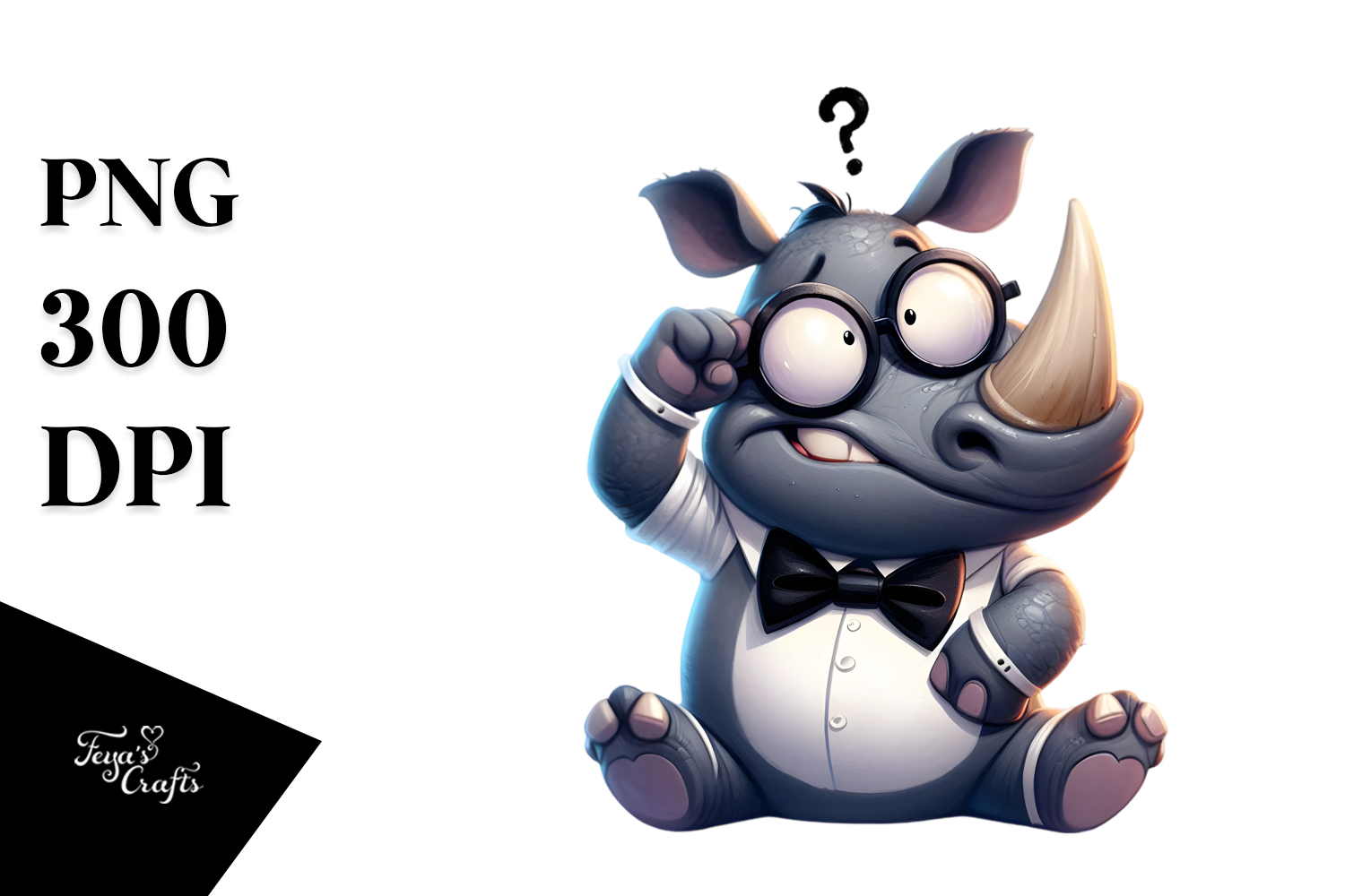 Cartoon Rhino with Cross-Eyed Expression PNG example image 1