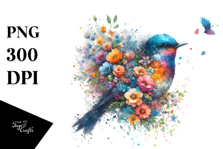 Watercolor Painting Skull Colorful Flowers Dust Bird Cloud Sublimation