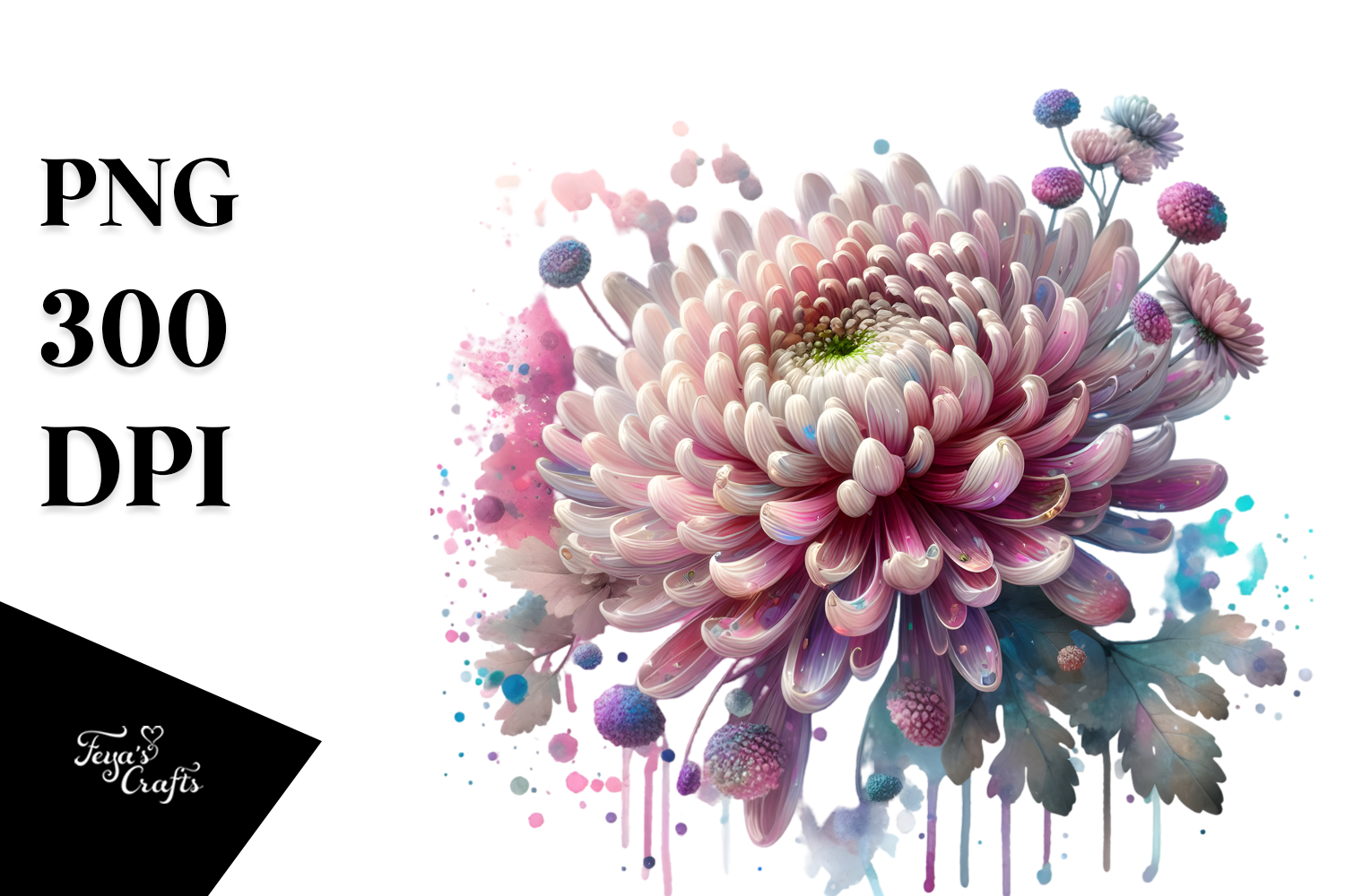 Sticker Summer Flower Png Glass Chrysanthemum Sublimation Watercolorsplash Metalicinsertions