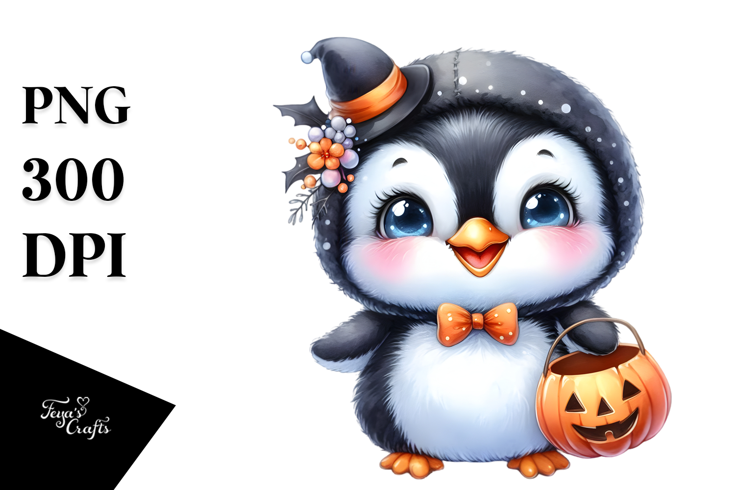 Goofy Baby Penguin in Halloween Attire PNG example image 1