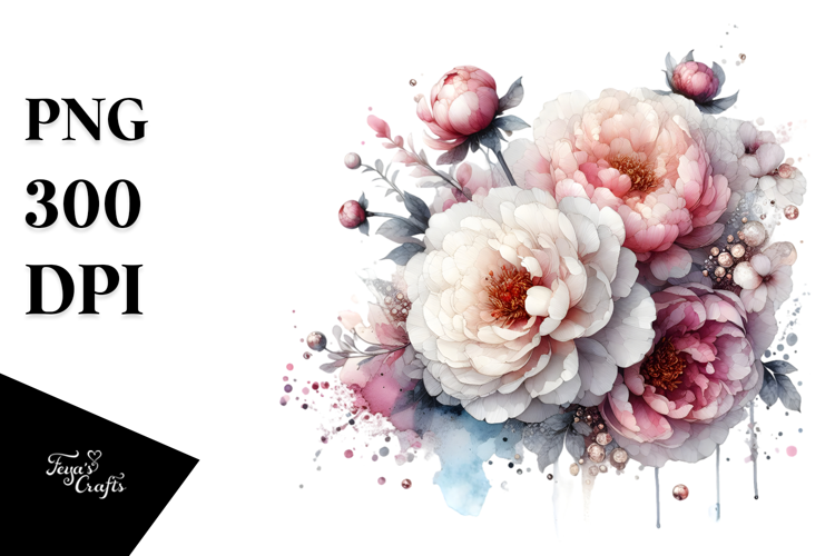 Sticker Summer Flower Peonies Png Sublimation Watercolorsplash Glassmaterial Metallicinsertions
