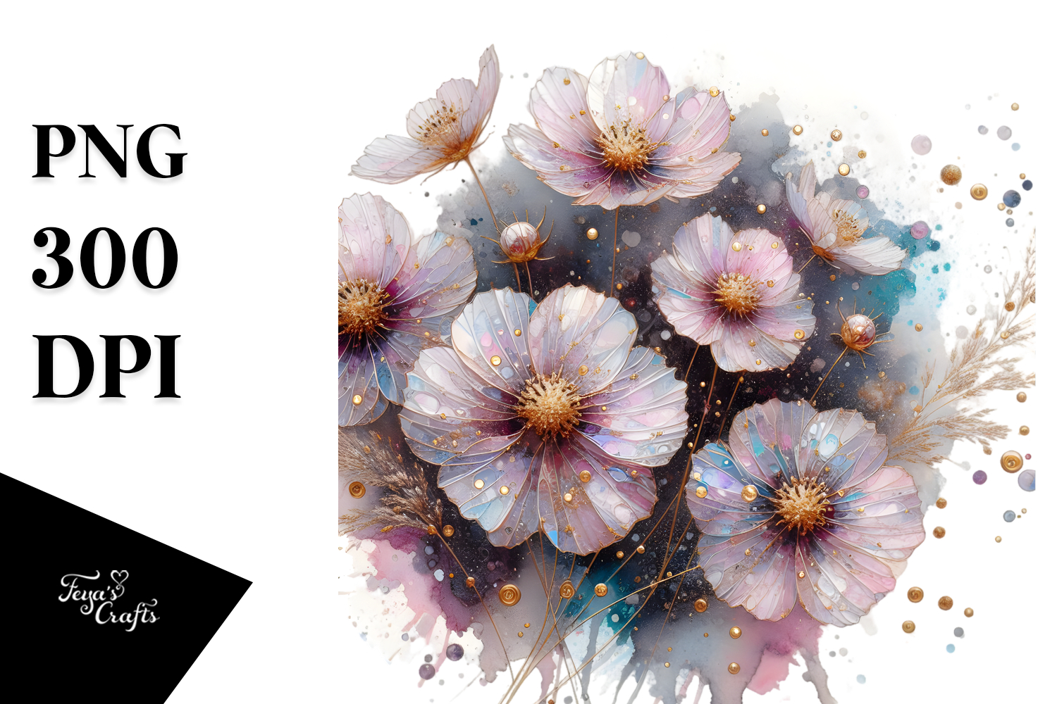 Sticker Summer Flower Png Glass Cosmos Sublimation Watercolorsplash Metalicinsertions