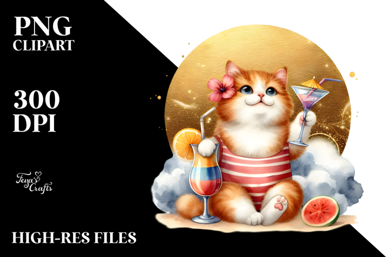 Sticker Summer Happy Flower Png Cat Cocktail Sublimation Beachwear