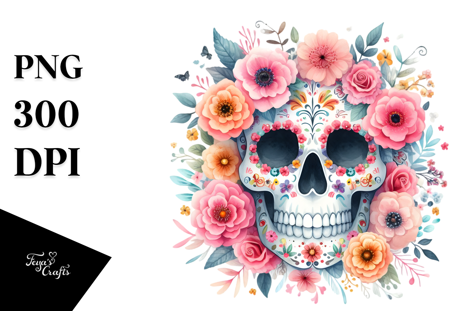 Sticker Summer Skull Flower Flowers Png Sublimation Whitebackground