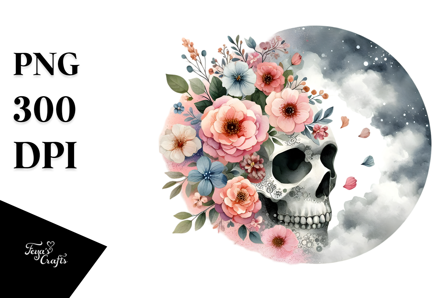 Sticker Summer Skull Flower Png Sublimation Whitebackground Springflowers Modernlook