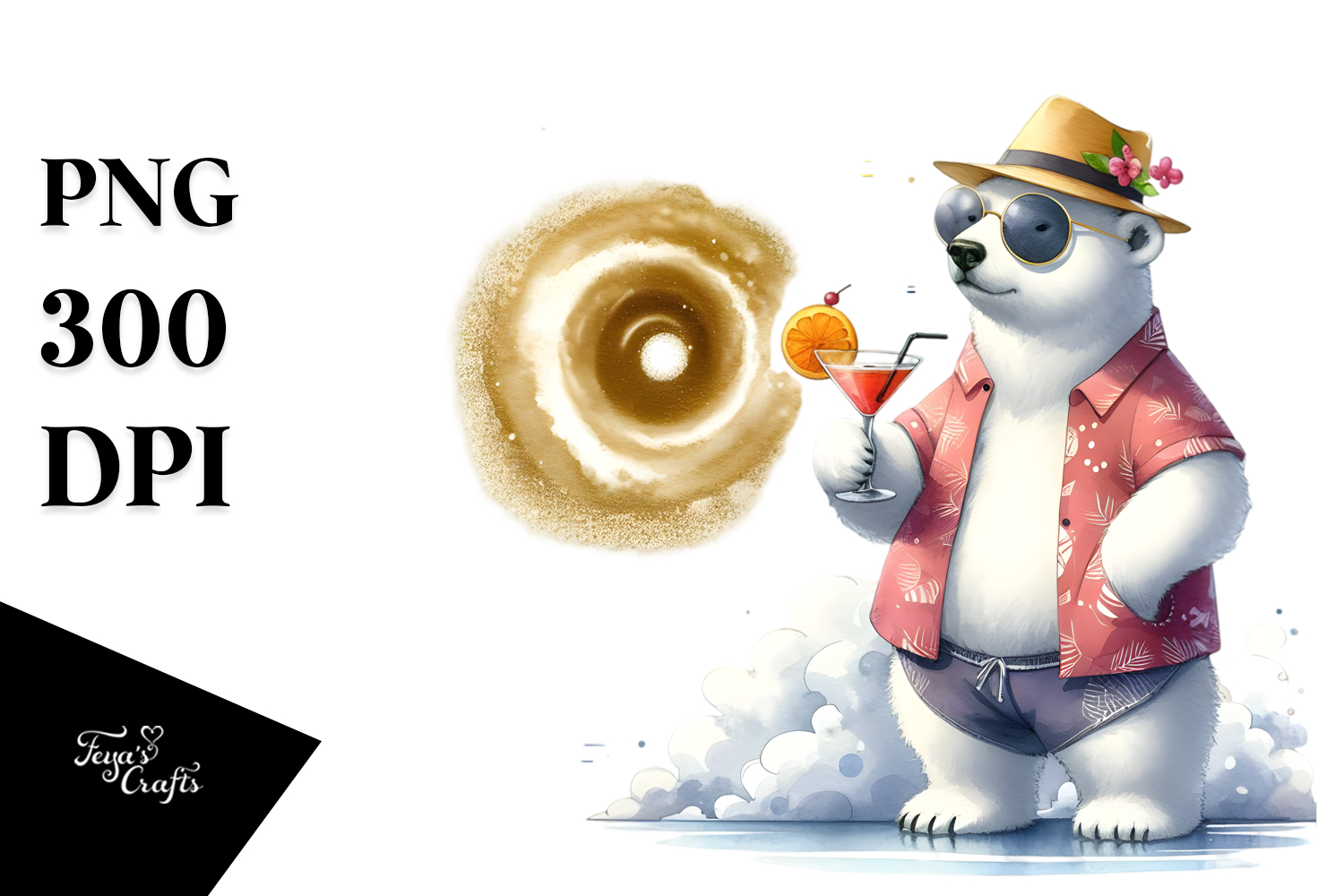 Funky Sticker Summer Flower Png Cocktail Sublimation Beachwear Polarbear