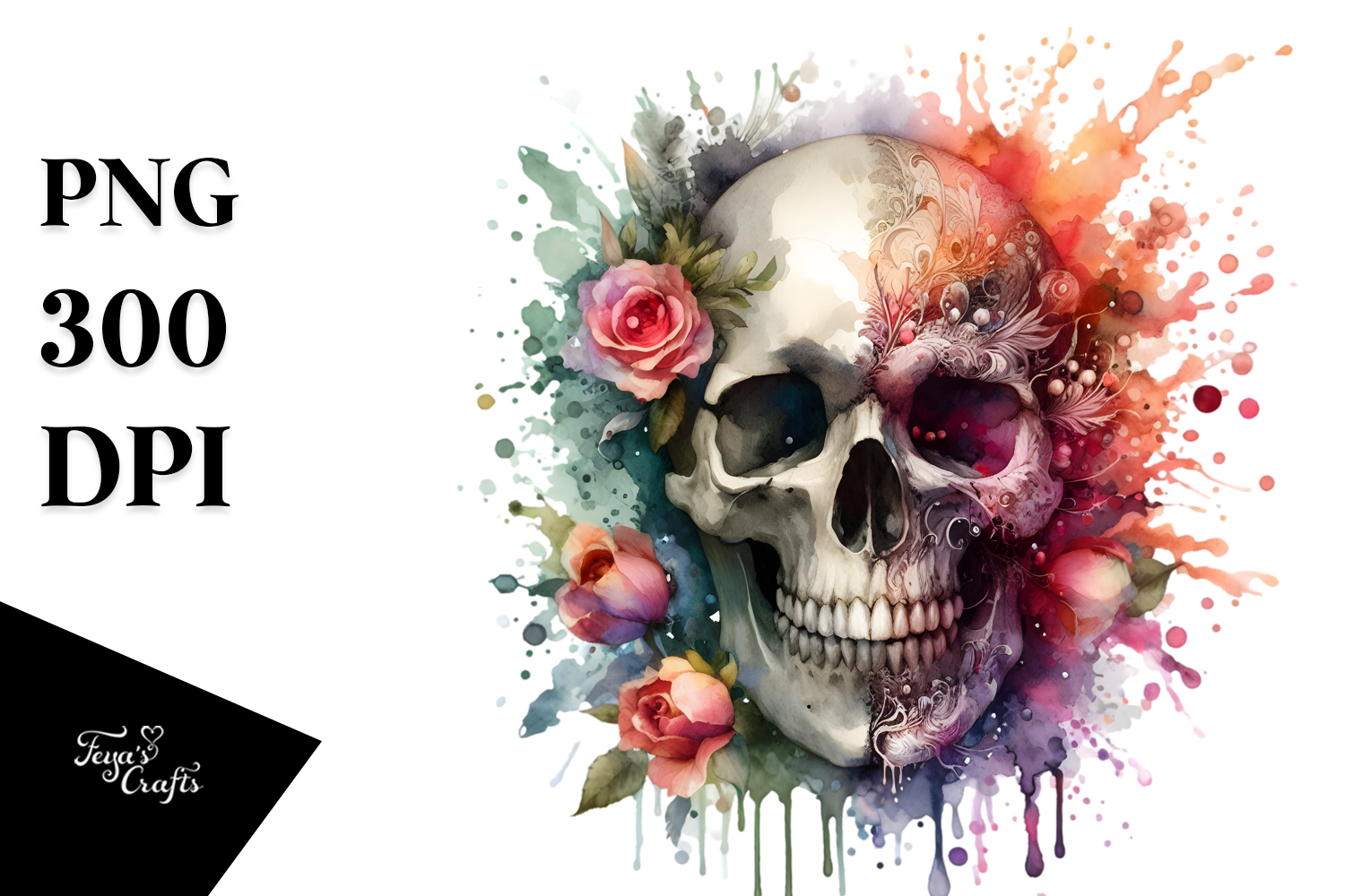 Sticker Summer Skull Flower Splashes Png Sublimation Whitebackground