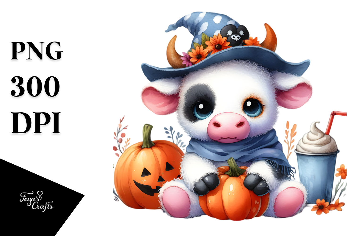 Cute Baby Cow Halloween Scenery | Sublimation | Clipart
