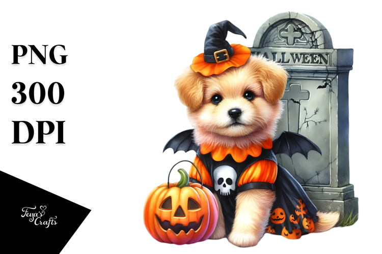 Cute Baby Dog Dressed for Halloween | Sublimation | Clipart example image 1