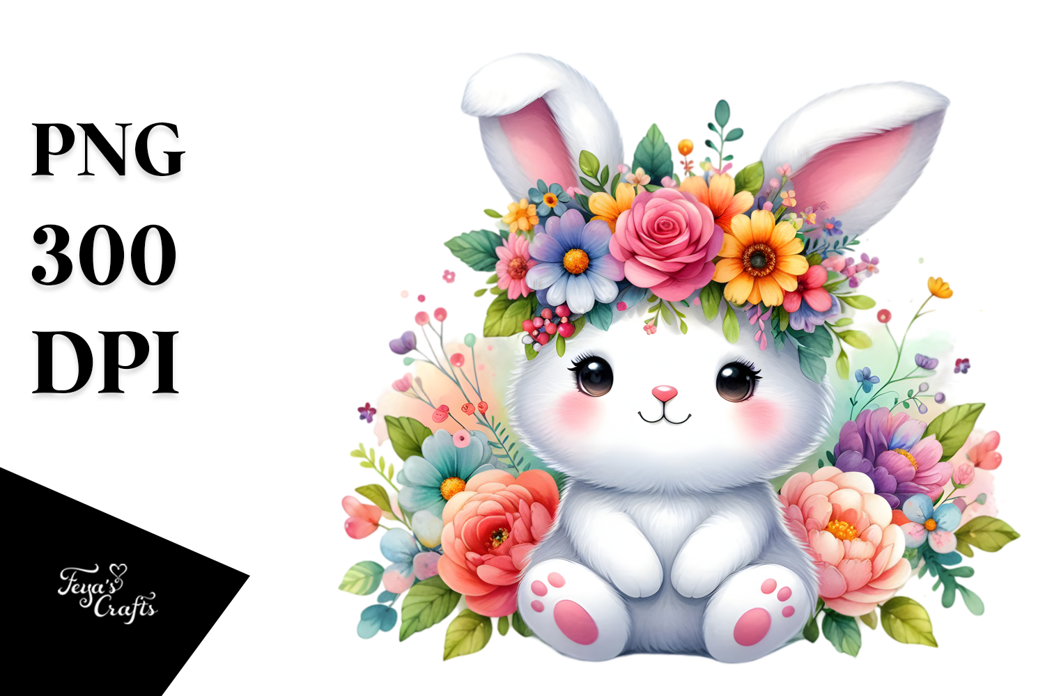 Sticker Summer Easter Flower Sitting Bunny Mothersday Sublimation Flowercrown