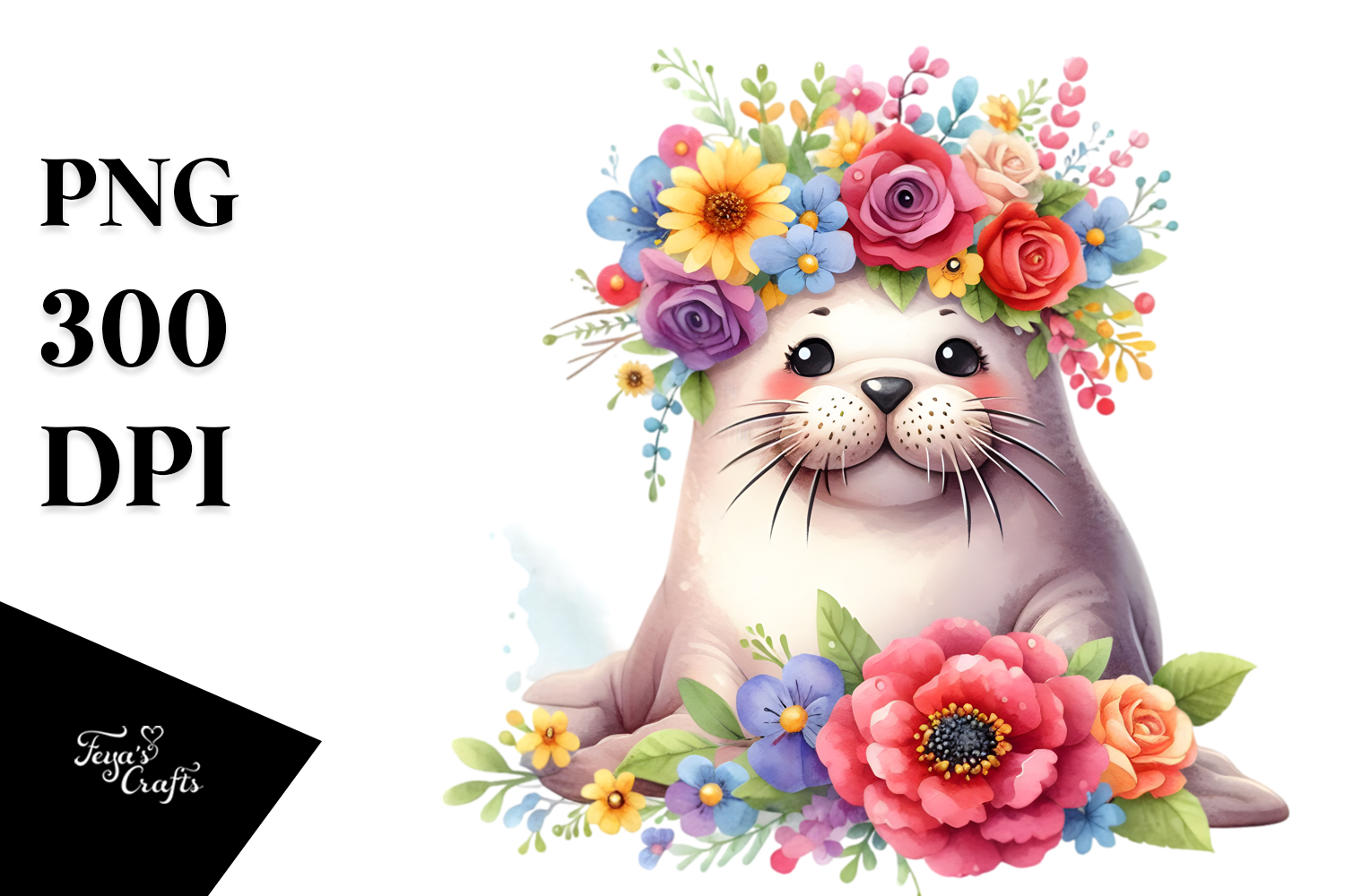 Sticker Summer Cute Flower Vibrant Png Walrus Sublimation Cartoon-style